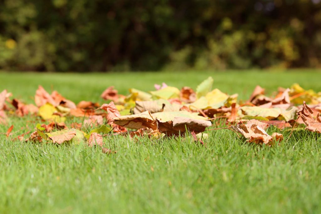 Da im September auch oft das erste Laub fällt, sollten Sie ihren Rasen davon befreien, damit er Luft und Sauerstoff bekommt.