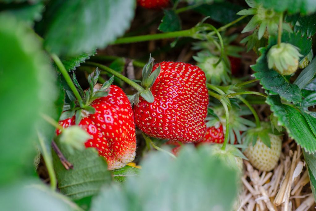 Im Juni können die ersten reifen Erdbeeren geerntet werden, auch andere Obstsorten reifen nach und nach.